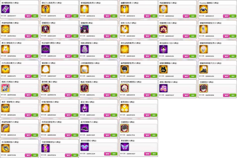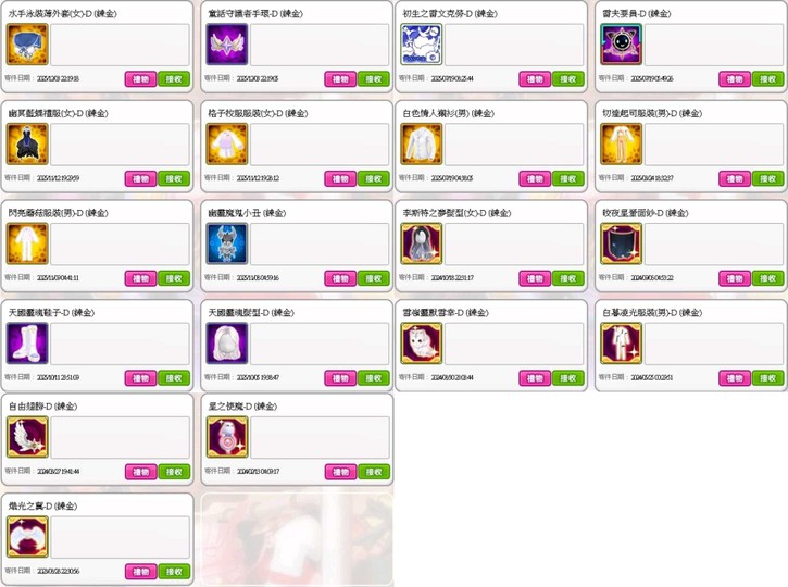 璀璨的光芒鞋子.皎月黓影髮型/衣服/鞋子/頭冠/翅膀.仙子女王翅膀.暮色夢夜翅膀.化裝舞會翅膀.女神愛麗絲翅膀.炙光之翼.變身!橡木桶.皇家公主LaLa寵物.不祥的黑暗翅膀.小黑狗.混沌.8bit小天使寵物.人魚少女蕾娜.星光霧夜髮型/手套.海洋旋律圍巾.伊爾絲之冠.璀璨的光芒翅膀.Project TR戒指.該隱的翅膀.炫光閃耀手環.星河回憶服裝.白色情人男友襯衫(女).童話月桂冠.死亡騎士翅膀.紫色煙火髮型.水母少女柔娜.混沌.榮耀頌歌髮型.化裝舞會王冠.珍奶白熊.榮耀頌歌手套.混沌.焰王赤月刀.星河回憶服裝.夏日時尚服裝(女).榮耀頌歌鞋子.人魚少女蕾娜.梅賽德斯翅膀.英倫泰迪服裝x2.皇家公主LaLa寵物.炫光閃耀手環.復古荷葉邊襯衫(女).千年雪狐.紫色煙火鞋子.人魚少女蕾娜.白色情人男友襯衫(女).赤腳(女).愛戀時刻外套.悠閒夏日背心(女).紫色煙火髮型.甜蜜幽靈之家.皇家仙子國王禮服.綠焰鞋子.紫色煙火髮型.千年的太陽陽焰.墮落天使的頭冠.棉花糖睡衣髮型(女).甜蜜幽靈之家.綠焰髮型/鞋子.邪惡深淵寵物.綠焰鞋子.冥王黑天刀.飛鼠運動帽T.