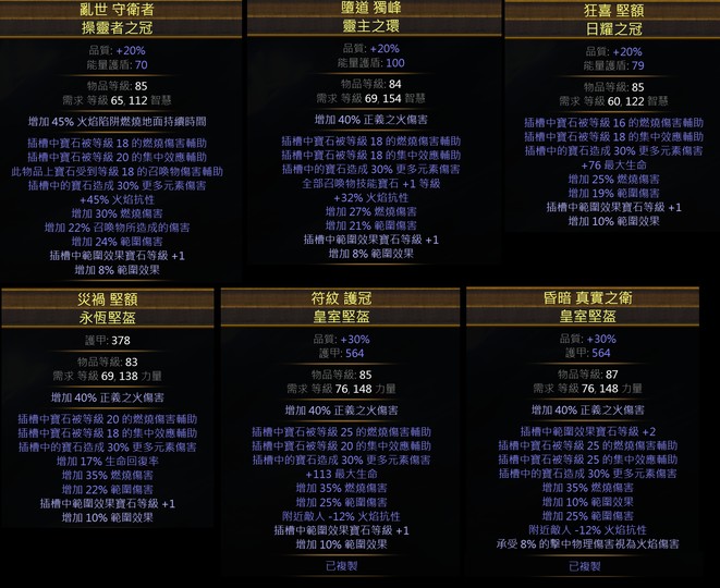 7-8L正火畢業頭盔更多元素集中效應燃燒傷害生命回復火抗範圍寶石+1(正義之火)