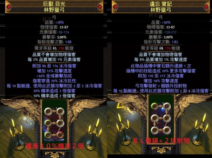 PoE魔鏡子複製😊頂級8L千敏弓衣服、箭袋項鍊手套鞋子戒指腰帶(2倍30%機率