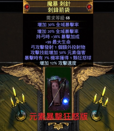 暴擊時有7%機率獲得狂怒球(T1頂數值詞綴)