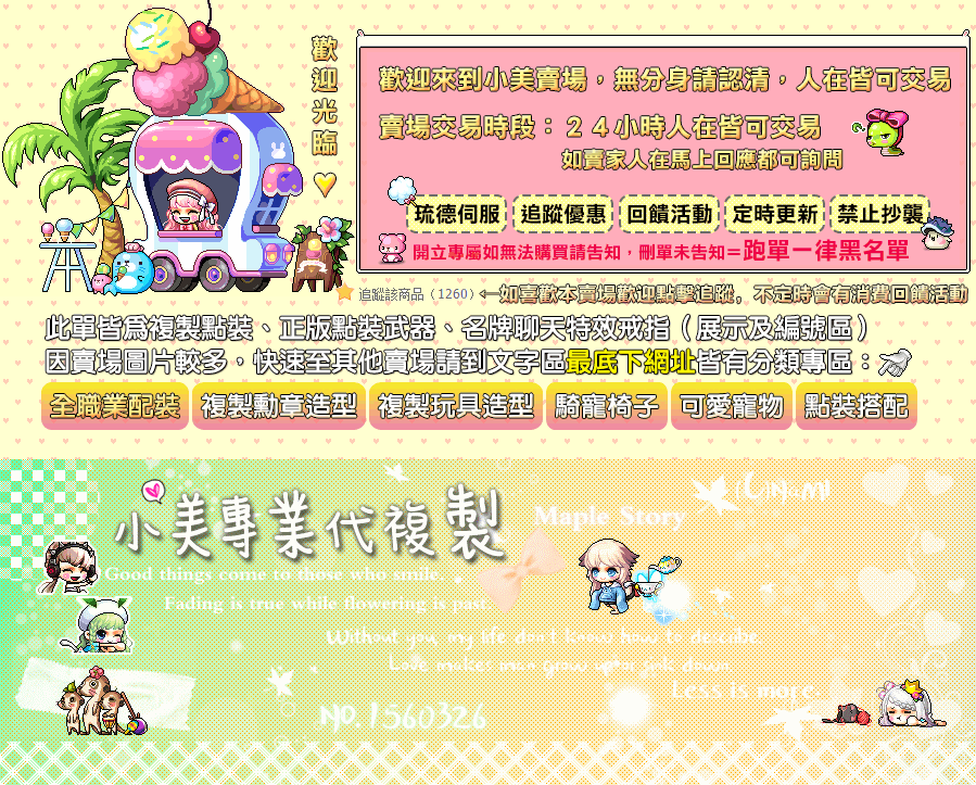 ❷部份裝備賣場無提供〖 全職業長杖、雙手棍、矛、拳套、套服、眼飾、臉飾等 〗