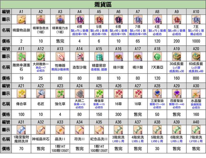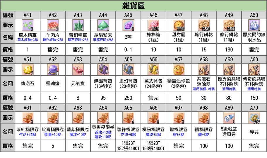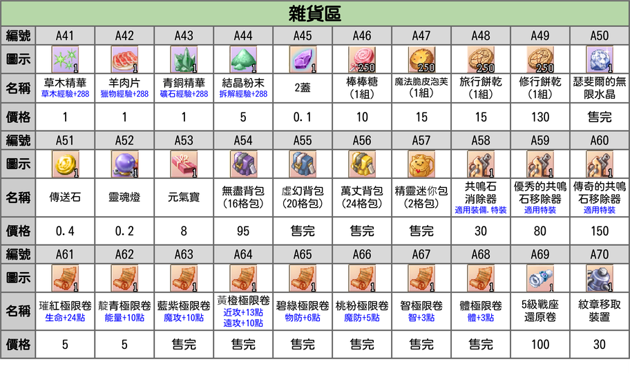 ◆ 五階無限級專精回歸石:可以將任意一項LV100無限級專精以下的專精技能等級歸0,歸0後將退回100%已投資在該技能的專精點數。