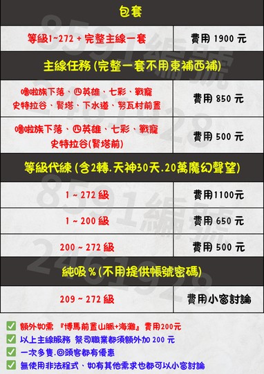 × 以上主線服務 祭司類都需額外加 200 元