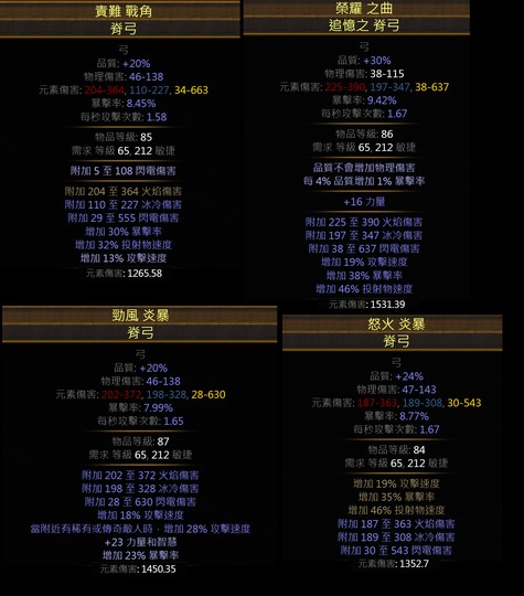 4把高階元素弓 元素DPS1265-1531 攻速/暴擊率閃電箭龍捲魔改三體光譜