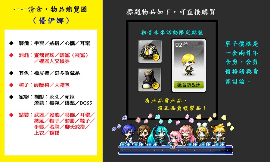 此單為 █ 鏡音連套服+鏡音鈴鞋子一套兩件(不含剪) █ 或單內等值物品
