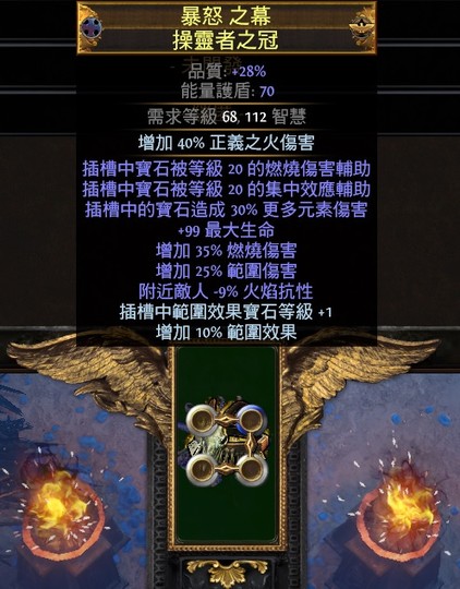 召插槽中寶石被等級20燃燒傷害輔助(T1頂數值詞綴)額外增加35%燃燒傷害