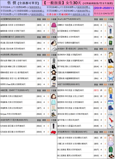 出清 [女生/男生30天一般/福利扭蛋] [114/11/27更新]