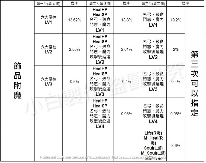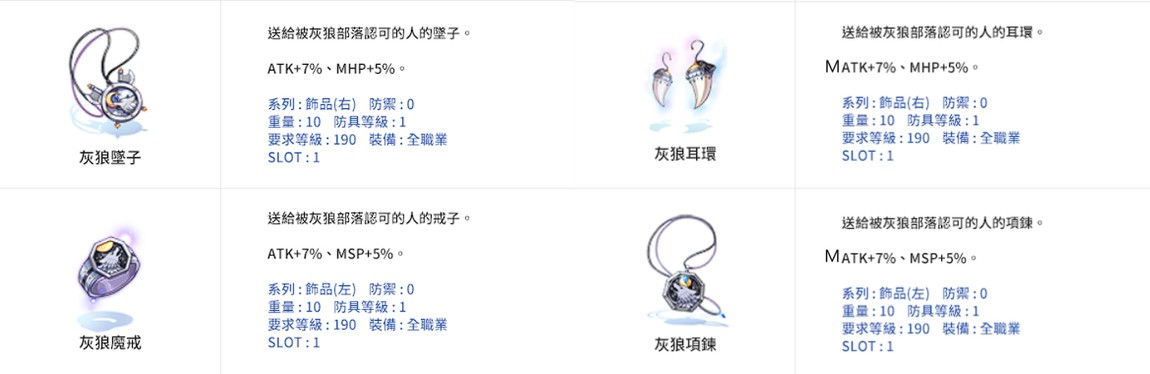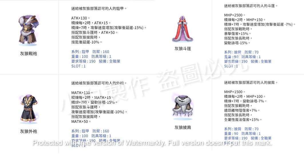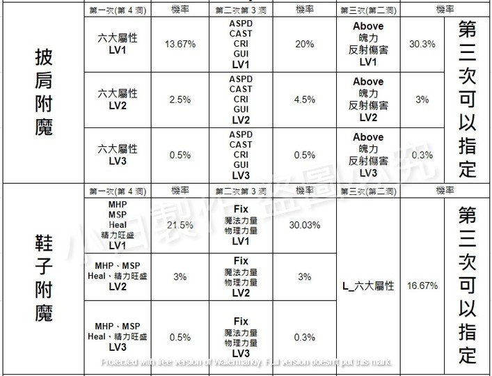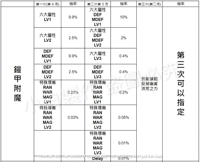 表格、資料參考自:官網、YT 主委:EP18 灰狼裝備能力、附魔流程介紹