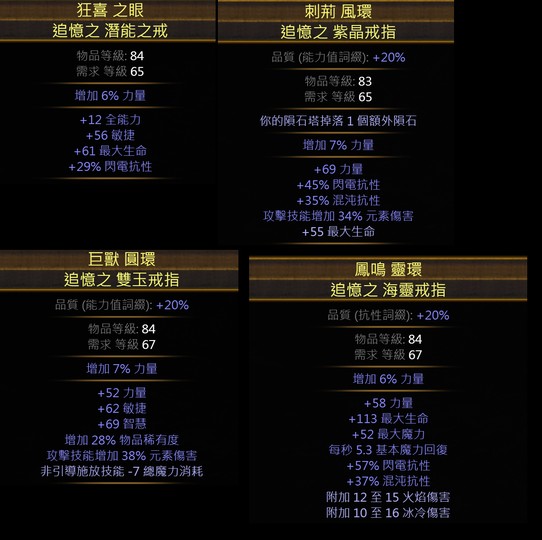 千力.全知流派戒指 力量%攻擊元素傷害生命減消耗