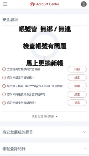 由於官方強制新版帳號需綁定信箱,無綁與單信箱依現況出貨