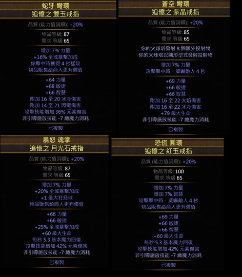 多顆千力.全知複製戒指 追憶上綴力量%猛攻威嚇暴擊加成+1綠球攻擊元素傷生命