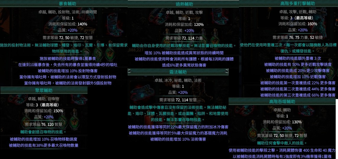 卓越技能寶石、代工所有武器、衣服6洞6鏈結服務