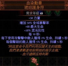 PoE👌傳奇→血染勳章.琥珀護身符(全域暴擊率、生命、攻擊獲得2%生命)