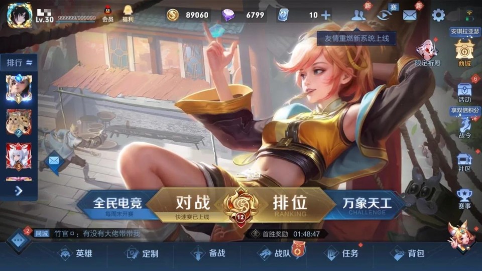 稀有英雄:不知火舞 夏洛特 娜可露露 橘右京 艾琳 韓信