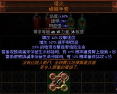 PoE👌埋火.蝮鱗手套(攻擊速度、偷取未保留生命10%機率獲得腎上腺素、猛攻)