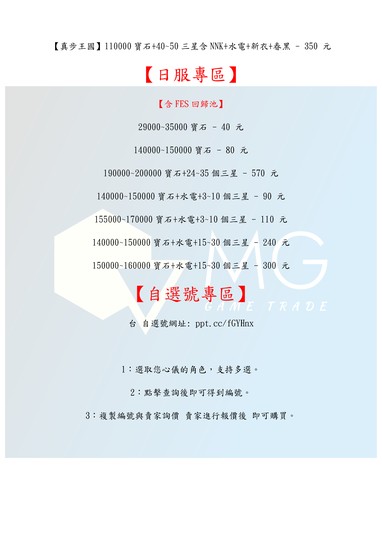 1.此為虚擬商品,不支持七天鑑賞期,介意勿購。 2.移交如有問題請勿更動帳號及綁定,請先聯繫賣家。 3.確認帳號無誤後,請依遊戲綁定方式更改密碼及綁定。 4.為避免交易糾紛,下單前請確認商品內容是否變更,未標示資源為隨機。 5.購買後14天內封號可保固退換 (發貨後開始計算時間), 14天後依封號原因判定,購買即視為同意此協議! 台 自選號網址: ppt.cc/fGYHnx