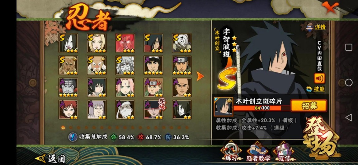 描述:8s準9s,創立斑84片了,很多稀有密卷,密卷水遁·水連彈非常好用,還有漂泊佩恩.漂泊再不斬,號里都是熱門忍者,喜歡的可小砍,誠心出售,騙子勿擾。