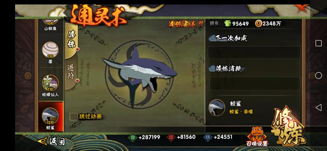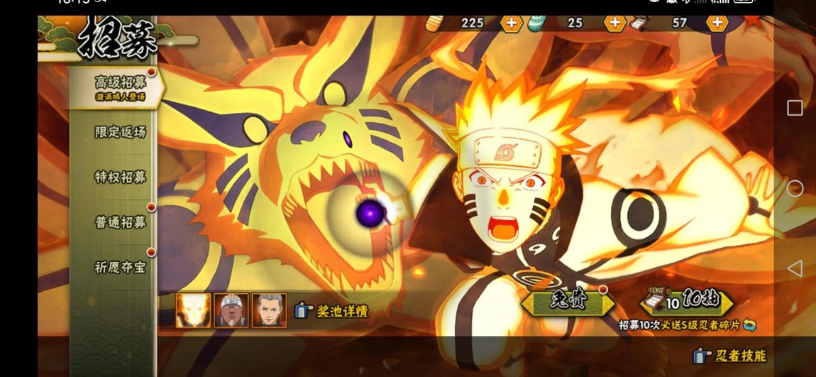 通靈獸:怒鬼 元氣忍犬 五尾 祥瑞金烏 一尾 蛤蟆文太 三尾 螃蟹 二尾