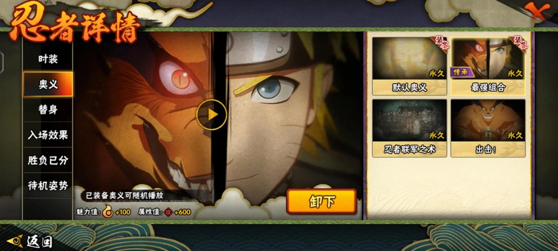 S忍:大蛇丸 宇智波帶土·忍者大戰 自來也·舞之豪杰 宇智波斑·木葉創立 九喇嘛連結·漩渦鳴人 大野木·忍界大戰