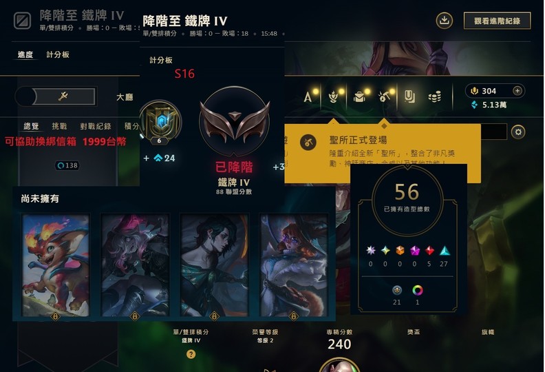 S16 鐵牌現形 德瑪裡的醜怪配合作亂 諾克愚蠻三權仍舊暴亂 現有5單雙、2彈性鐵4