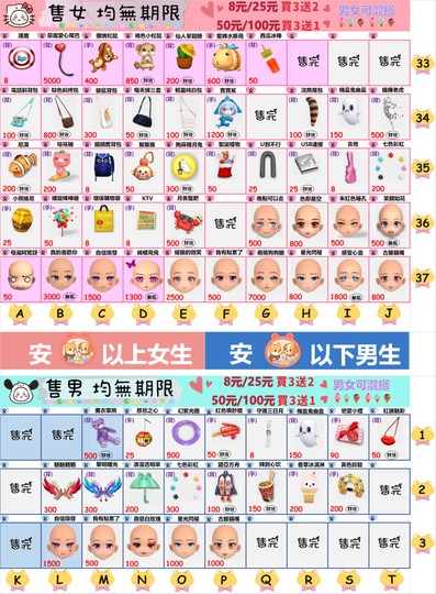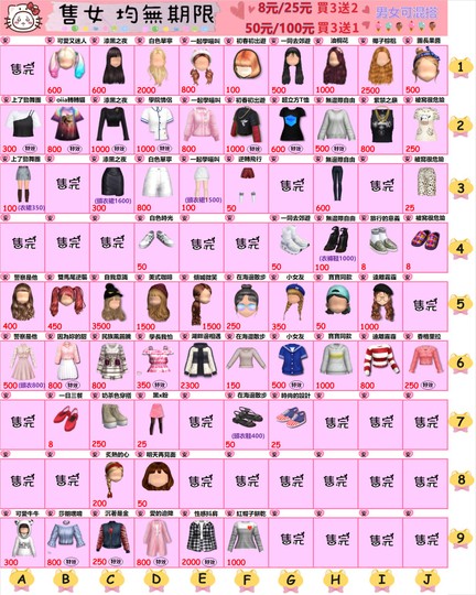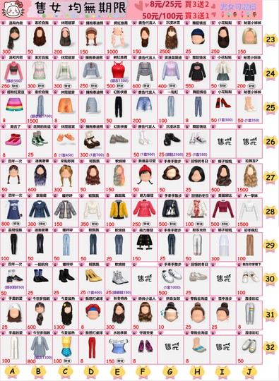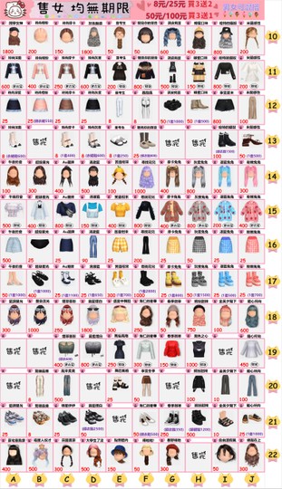 售女生(全部可單買)