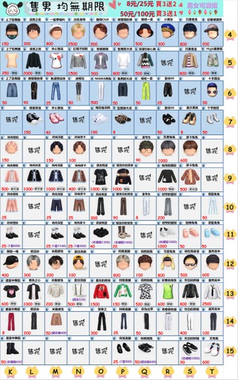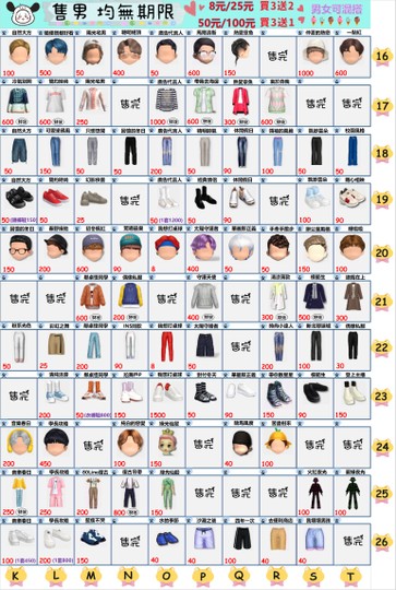 售男生(全部可單買)