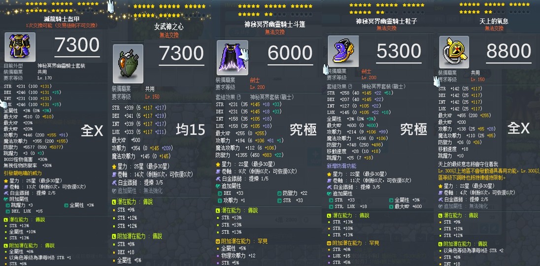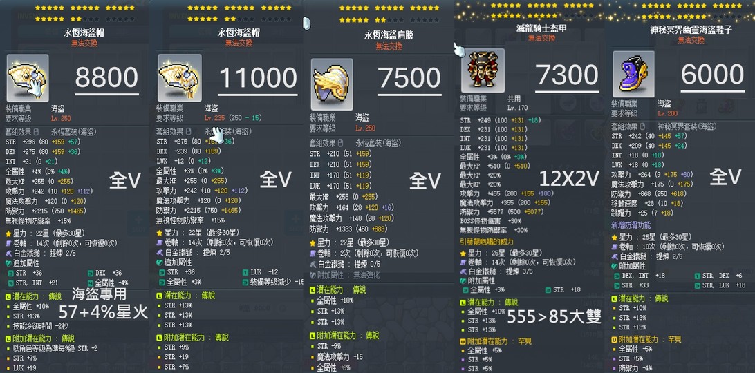 各式%力雙傳/傳罕神秘永恆劍士永恆海盜套頂培.漆黑套.女武.滅龍.天上各式成品