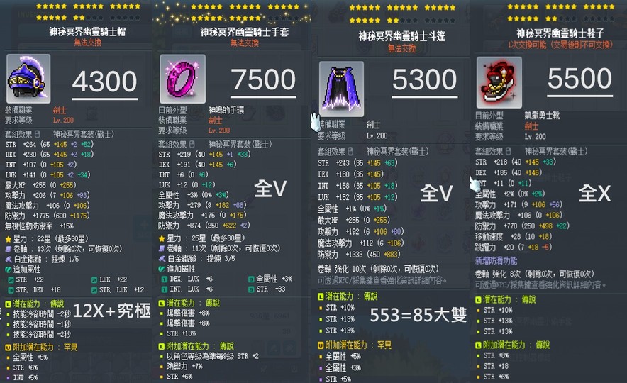 神秘永恆劍士雙傳-CD帽雙傳手套鞋子護肩披風成品阿戴爾劍豪拳霸英雄素質價格如附圖