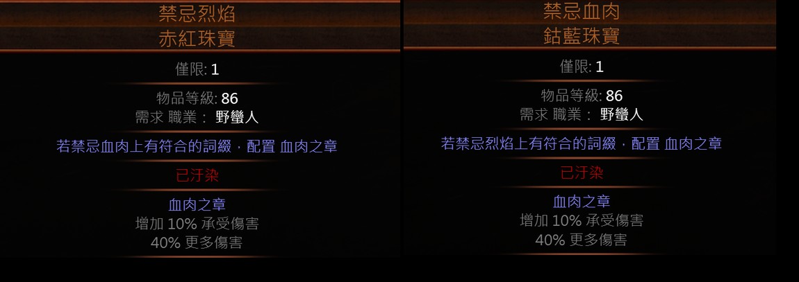 禁忌烈焰禁忌血肉 對對碰傳奇珠寶 血肉之章一對 野蠻人增傷必備物品