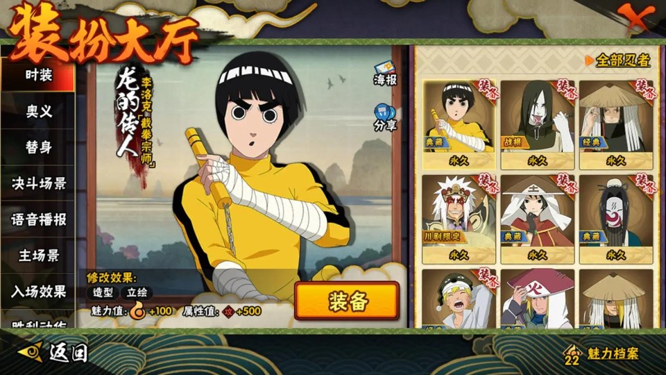 A忍:邁特凱 猿飛阿斯瑪 干柿鬼鮫 飛段 飛段·死司憑血 宇智波佐助·須佐能乎 我愛羅·疾風傳 猿飛阿斯瑪·七夕限定 飛段·惡靈之影 波風水門·青年