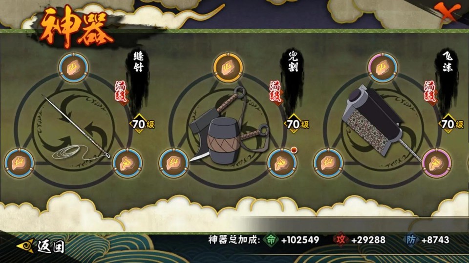 S忍:千手柱間·穢土轉生 宇智波鼬·穢土轉生 藥師兜·仙人模式 宇智波斑·穢土轉生 大蛇丸 自來也·舞之豪杰 宇智波斑·白面具