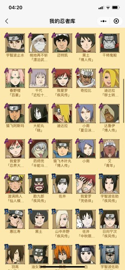 S忍:千手扉間·穢土轉生 死門·邁特凱 無·二代目土影 蜀面豪杰·自來也 九喇嘛連結·漩渦鳴人 大蛇丸 綱手 猿飛日斬 波風水門·穢土轉生 猿飛日斬·穢土轉生 宇智波斑·穢土轉生 宇智波斑·白面具 半藏·穢土轉生 藥師兜·仙人模式 千手柱間·穢土轉生 自來也·舞之豪杰 神秘面具男 綱手·百豪