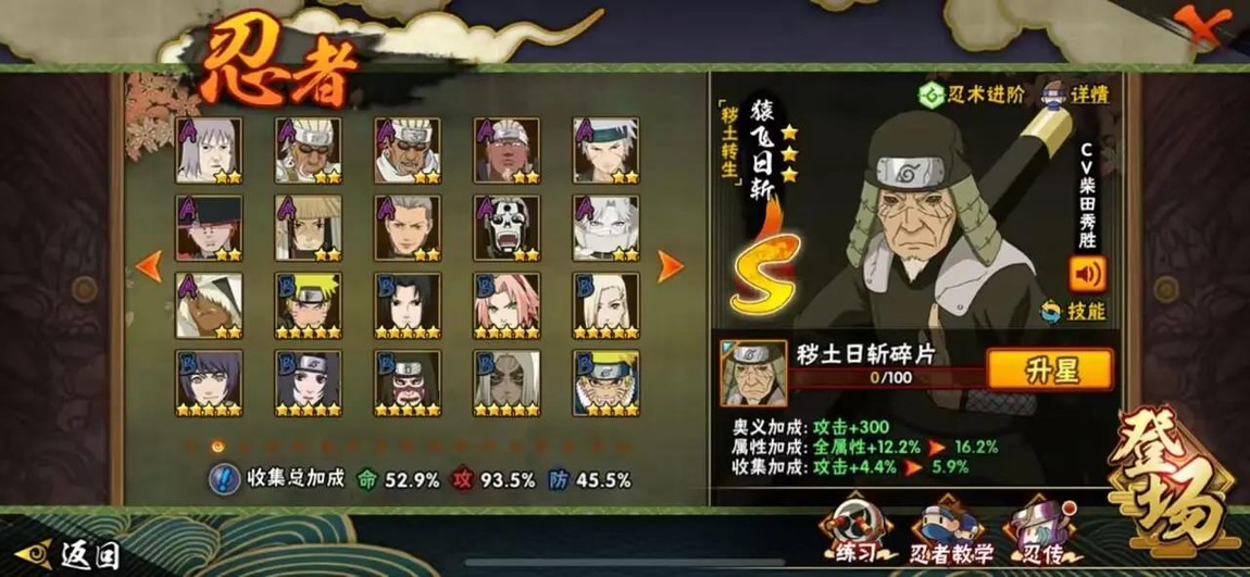 S忍:千手柱間·穢土轉生 蜀面豪杰·自來也 博人傳·大筒木金式 九喇嘛連結·漩渦鳴人 大蛇丸 猿飛日斬·穢土轉生 宇智波斑·白面具 羅砂·四代目風影 藥師兜·仙人模式