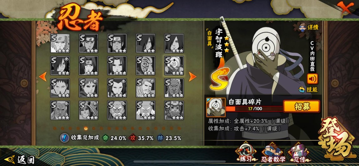 【999999等】【3個S忍】高級通靈1500點眷扉間武士