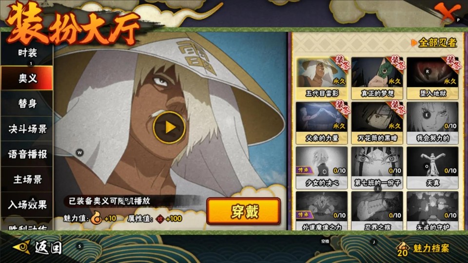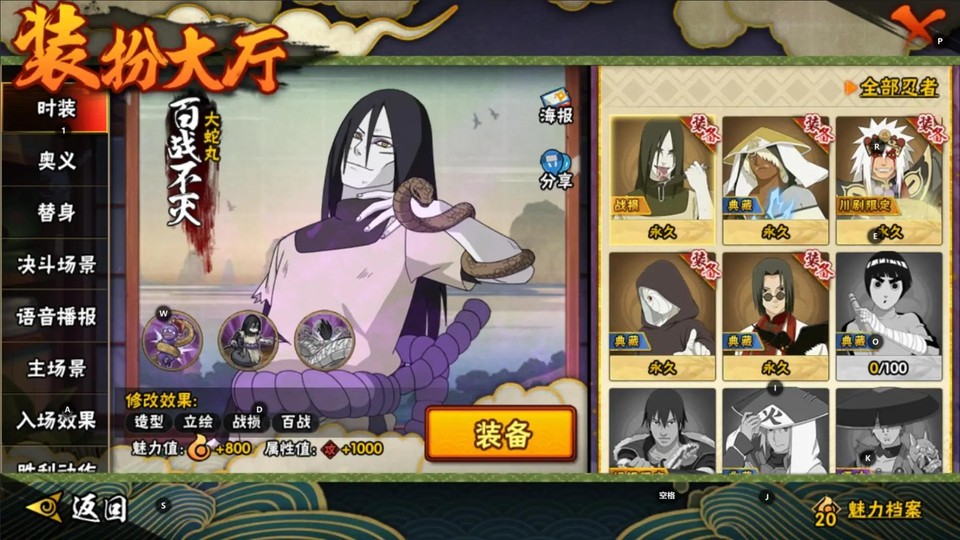 S忍:宇智波鼬·穢土轉生 宇智波斑·木葉創立 自來也 大蛇丸 自來也·舞之豪杰 宇智波帶土·忍者大戰