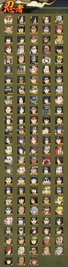 A忍:干柿鬼鮫 宇智波鼬 宇智波佐助·須佐能乎 千代·近松十人衛 猿飛阿斯瑪·穢土轉生 黑土·博人傳 桃地再不斬·漂泊武士 蝎 佩恩·六道·漂泊浪客 猿飛阿斯瑪 波風水門·新春限定 艾·青年 飛段·死司憑血 飛段 邁特凱 秋道丁次·忍界大戰 我愛羅·忍界大戰