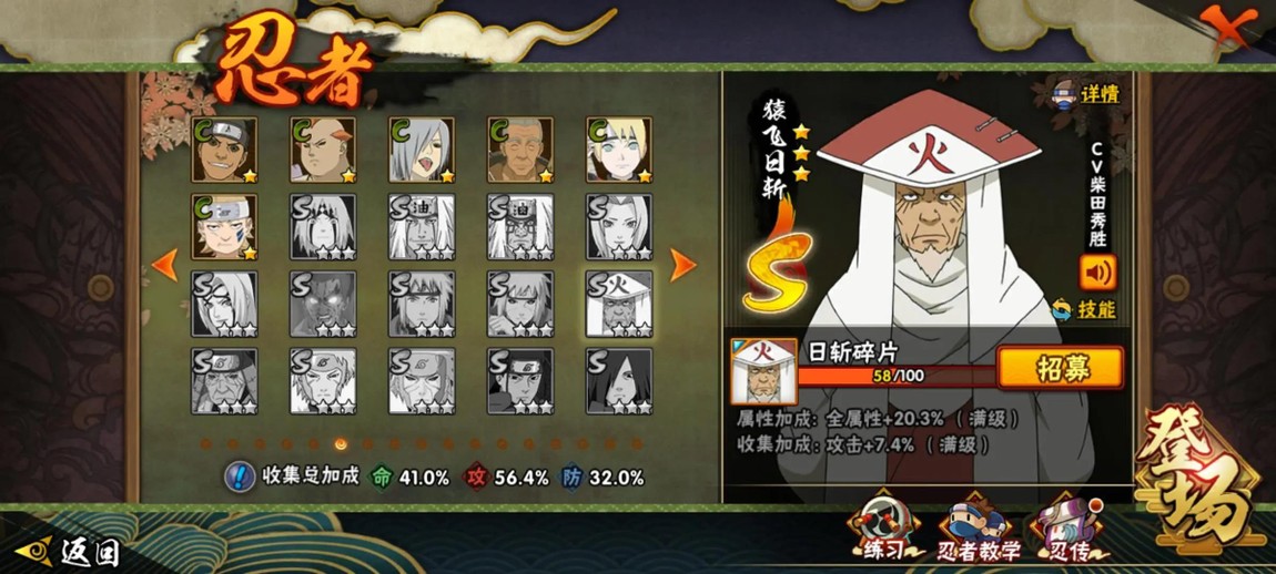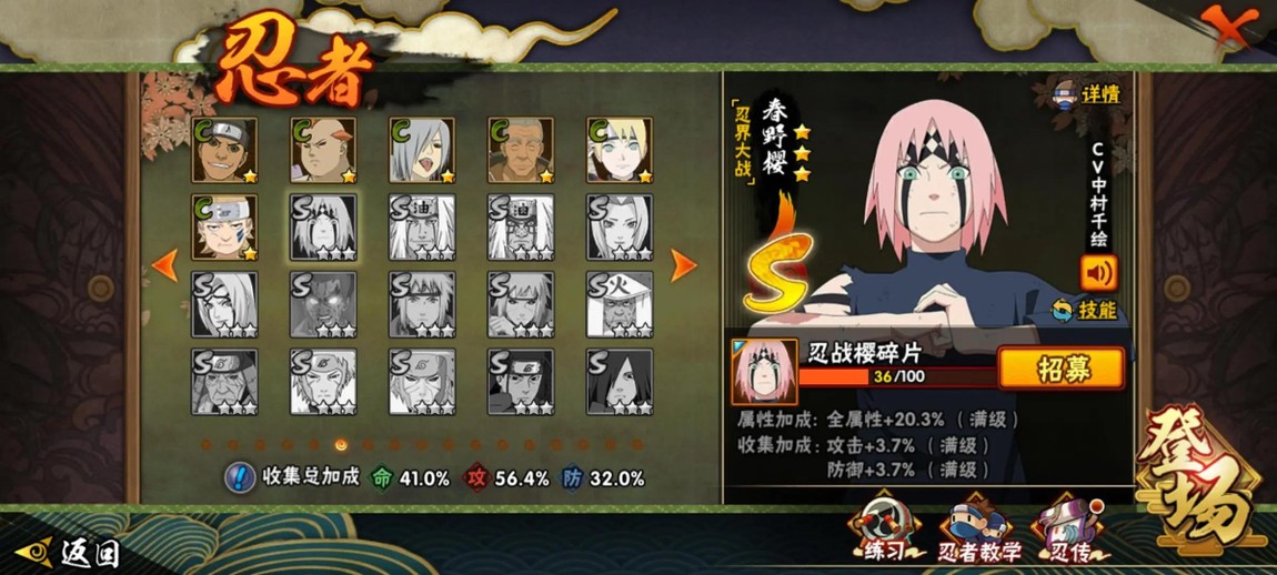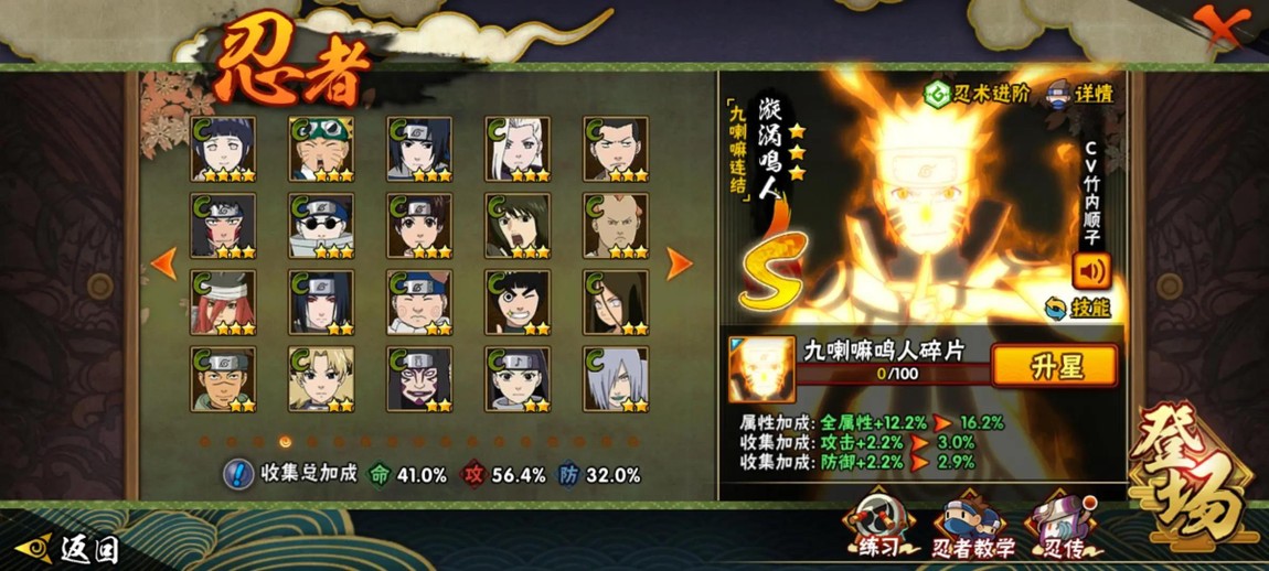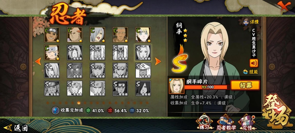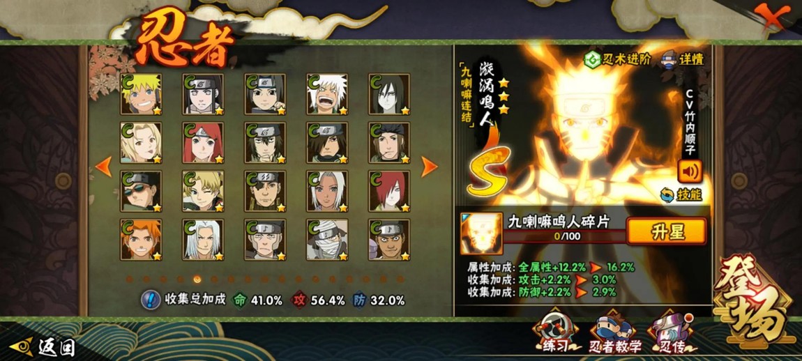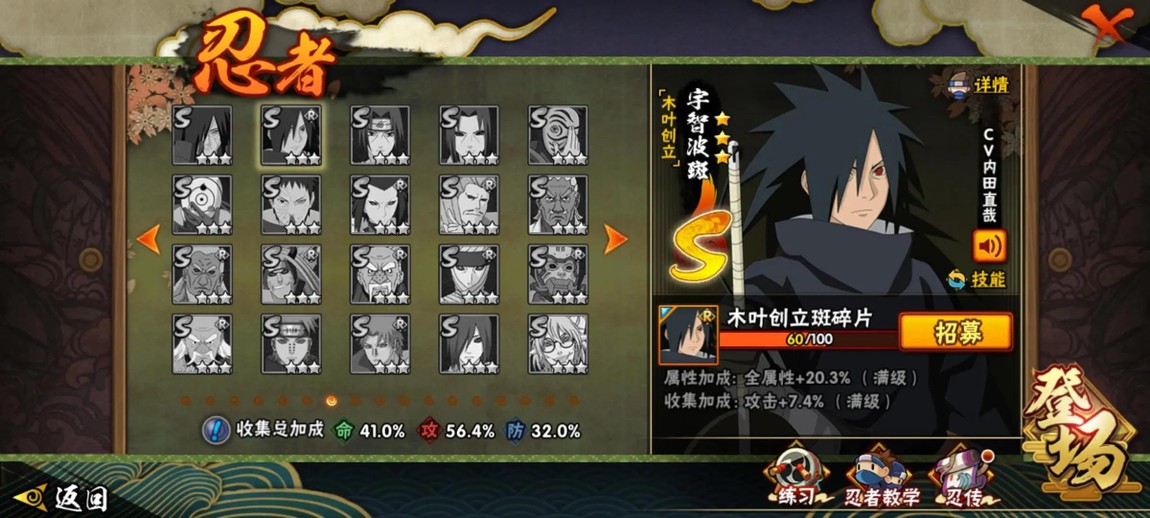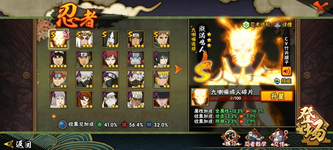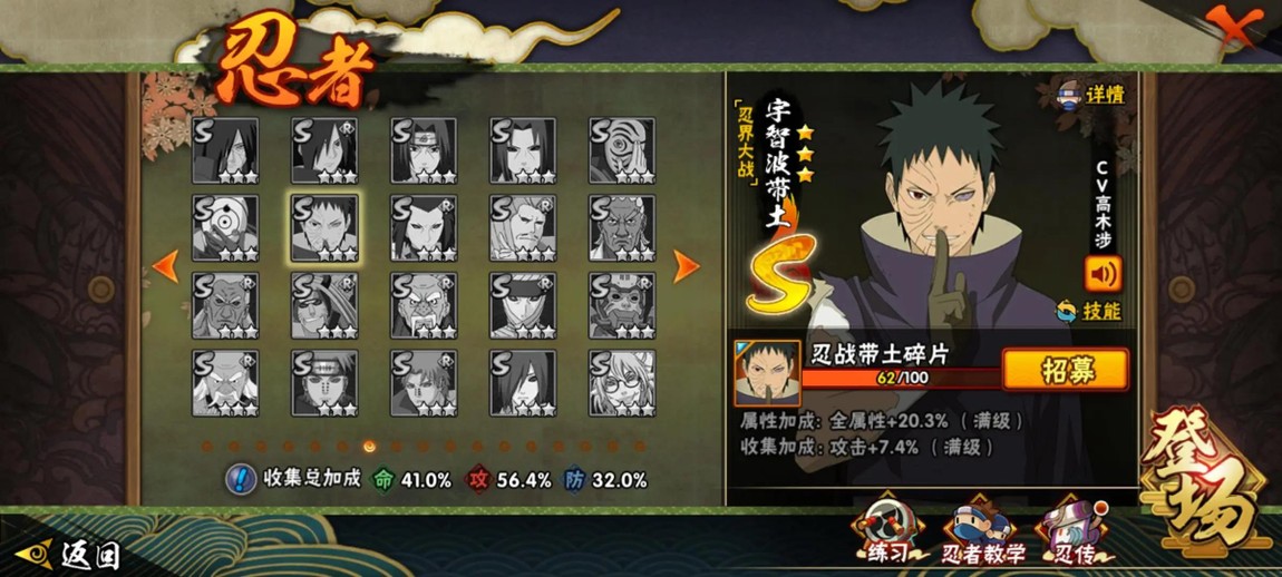 S忍:九喇嘛連結·漩渦鳴人 宇智波斑·木葉創立 宇智波帶土·忍者大戰 千手柱間·穢土轉生 羅砂·四代目風影 大蛇丸 綱手