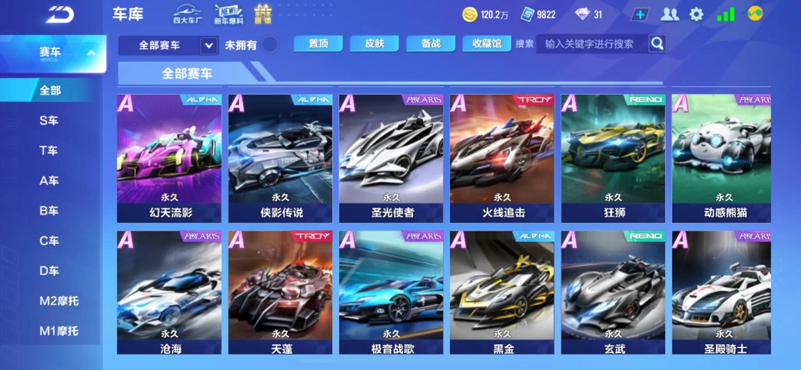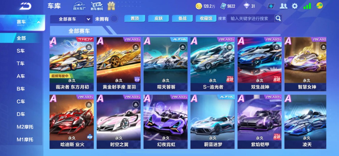 車庫:S-裁決者 瘋狂二哈 冥王哈迪斯 黃金射手座 S-天行者 智慧女神 噬天饕餮 海神 天蓬 雙生戰神