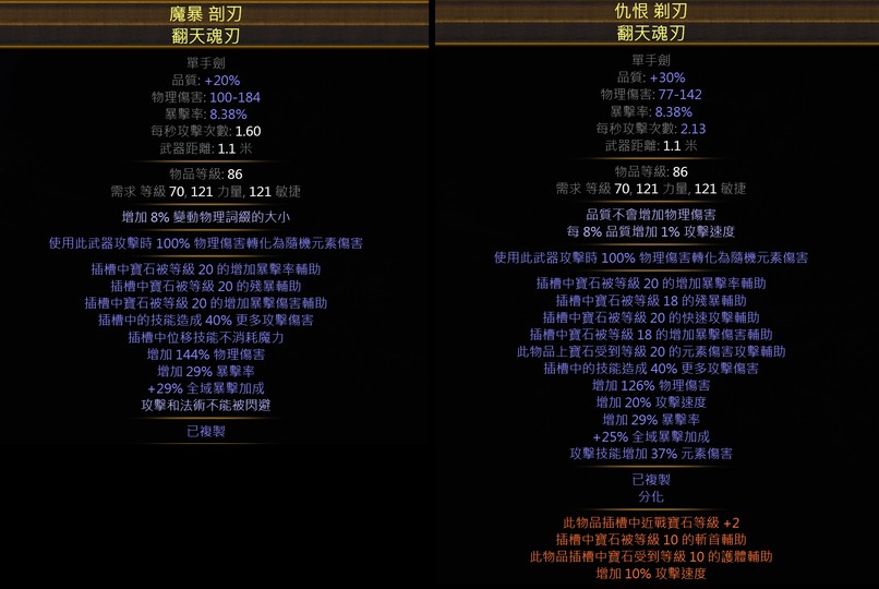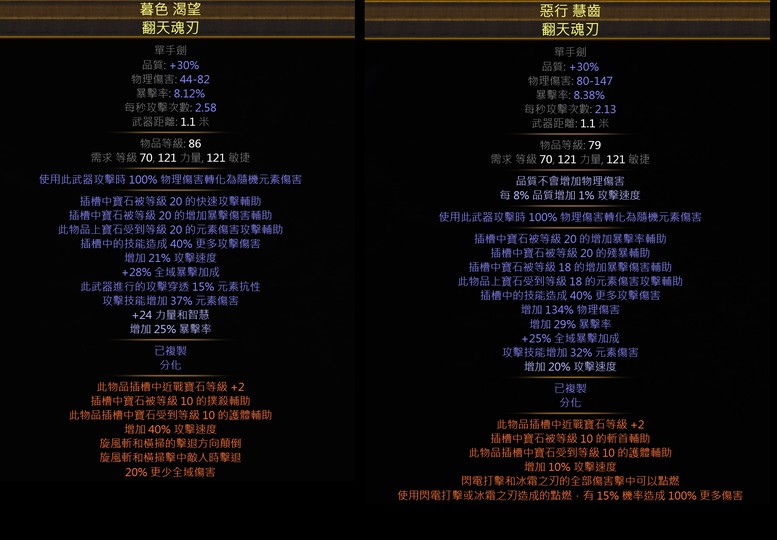 翻天魂刃複製品10-14L 暴擊機率/40%更多攻擊/殘暴/斬首/護體/元素傷害