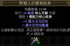 PoE紋身敏捷30👌能力→野蠻人的尊榮紋身(最大1%冰冷抗 /狂怒球+1數量)