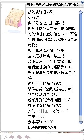 +10思念者斗篷 ( ASPD+1)+思念體破壞因子研究錄(盜賊篇+服事篇)