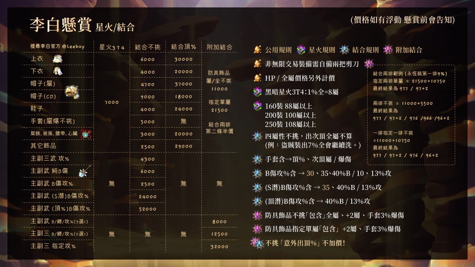 【李白】全服懸賞྾皇家྾20星྾白鎚྾附加྾結合྾寶玉྾暗黑輪迴星火྾代洗內襯྾