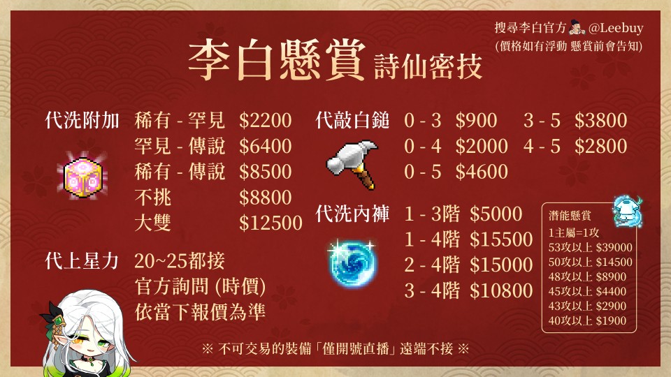 【李白】全服懸賞྾皇家྾星力྾白鎚྾結合྾附加྾寶玉྾黑暗輪迴星火྾代洗內襯྾