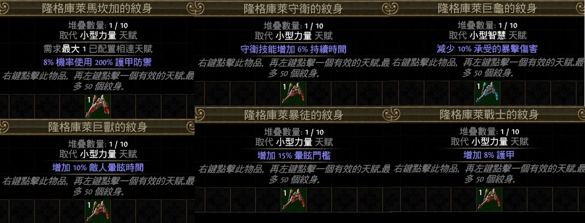PoE紋身天賦→隆格庫萊(護甲防禦、守衛技能、減少暴擊傷、暈眩)