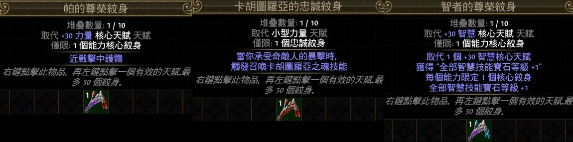 PoE忠誠紋身👌帕的尊榮紋身(近戰護體)卡胡圖羅亞(召喚)智者(智慧寶石等級)