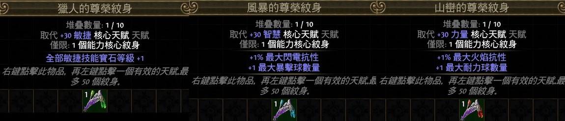 PoE能力紋身👌山巒(火焰抗性耐力球)風暴(閃電抗性暴擊球)獵人(敏捷寶石)