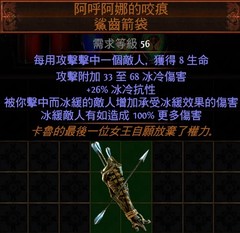 PoE👌阿呼阿娜的咬痕.鯊齒箭袋(擊中冰緩、冰冷抗性、冰冷傷害、擊中生命)