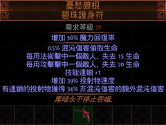 PoE👌傳奇→憂愁獠根.碧珠護身符(混沌偷取生命、連鎖投射物、法術攻擊魔力)
