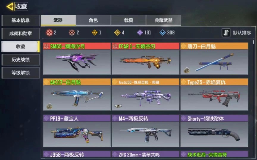 槍械描述:滿級潮海,滿級無境,唐刀,白月魁,魅惑靈狐