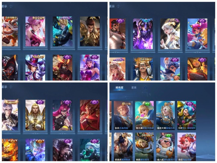 描述:S1老玩家各種高質量紫皮還有神話皮,加王者榮耀諸葛亮典藏,這倆游戲充了一萬多